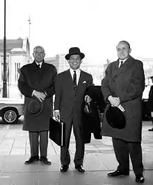 Olli Auero (right) receiving the Ambassador of the Philippines Melchor P. Aquino in 1964. On the left, Lieutenant General Paavo Talvela.