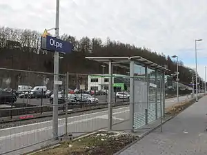 Olpe station (German: Haltepunkt Olpe) is a railway station in the municipality of Olpe, located in the Olpe district in North Rhine-Westphalia, Germany.