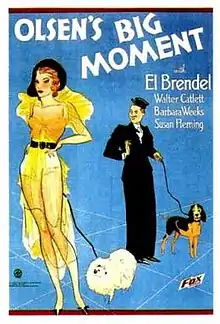 Olsen's Big Moment is a 1933 American pre-Code comedy film directed by Malcolm St. Clair and written by Henry Johnson and James J. Tynan. The film stars El Brendel, Walter Catlett, Barbara Weeks, Susan Fleming, John Arledge and Joe Sawyer. The film was released on November 17, 1933, by Fox Film Corporation.[1][2]