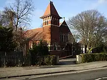 Situated at the junction of the Warwick Road with St Bernards Road and Kineton Green Road is the parish church of St. Margaret's, begun in 1880 as a chancel and completed by B. Corser in 1896.[17] It has rock faced walls, no tower and round piers with well carved naturalistic flower capitals.[18]