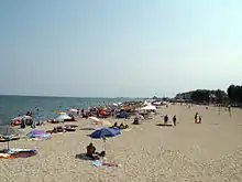 Olympiaki Akti is a tourist destination and seaside resort suburb (settlement) in the Gulf of Thermaic of the Katerini municipality in the east Pieria province, Greece. It is part of the Olympian Riviera and its namesake beach awarded E.U. Blue Flag with entire sand coastline. It is located 7.5 km from Katerini city, 3 km south of Paralia, 70 km from the city of Thessaloniki, 107 km from Thessaloniki International Airport "Makedonia" (IATA: SKG, ICAO: LGTS), 434 km from Athens, northeast of Pierian Mountains and Mount Olympus. The Olympiaki Akti belongs to Olympus Riviera which is both the Mount Olympus and Pieria region coastal area located about 70klm stretching from the southern region of Pieria, Neoi Poroi to Makrygialos settlement on the north. Olympiaki Akti had a population in 2011 of 320 inhabitants according to the 2011 census.[1][2] The settlement Olympiaki Akti has been part of the municipality of Katerini since 1981.[3]
