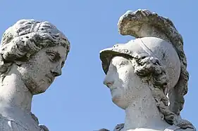 Apparently, she was originally named Polyxena, as Plutarch mentions in his work Moralia, and changed her name to Myrtale prior to her marriage to Philip II of Macedon as part of her initiation into an unknown mystery cult.[3] The name Olympias was the third of four names by which she was known. She probably took it as a recognition of Philip's victory in the Olympic Games of 356 BC, the news of which coincided with Alexander's birth (Plut. Alexander 3.8).[11] She was finally named Stratonice, which was probably an epithet attached to Olympias following her victory over Eurydice in 317 BC.[3]