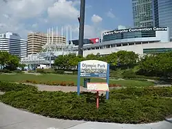 Olympic Park is a park by Toronto's Metro Toronto Convention Centre, in Ontario, Canada. Located at York Street and Lake Shore Boulevard West, the park has a ring of brick pavers engraved with names.[1]