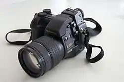 The Olympus E-20 (available under the names E-20N and E-20P, depending on whether it had NTSC or PAL video output, respectively) is a 5-megapixel non-interchangeable lens DSLR manufactured by Olympus Corporation of Japan, as a successor to its E-10 model. It also has a fixed lens and a beam splitting prism instead of a moving mirror. It has easy dial keys for choices of pictures, videos, and more. It was announced on September 13, 2001.[1]