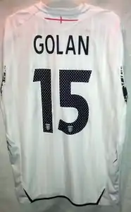 A 2007–2009 England home shirt, with printing of Golan's name and number, demonstrating his temporary hero status for England fans.