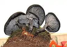 Fungi of this genus produce fleshy mushrooms with smooth or fibrous caps with gills and fleshy or fibrous stems growing in clumps on wood.[7] O. mexicanus has dark blue fruiting bodies tinted with yellow.[5]