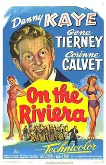 On the Riviera is a 1951 Technicolor musical comedy film made by 20th Century Fox. Directed by Walter Lang and produced by Sol C. Siegel from a screenplay by Valentine Davies and Phoebe and Henry Ephron, it is the studio's fourth[3] film based on the 1934 play The Red Cat by Rudolph Lothar and Hans Adler. This version stars Danny Kaye, Gene Tierney and Corinne Calvet, with Marcel Dalio, Henri Letondal and Sig Ruman.