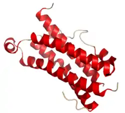 - 1 2 PDB: 1EVS; Deller MC, Hudson KR, Ikemizu S, Bravo J, Jones EY, Heath JK (August 2000). "Crystal structure and functional dissection of the cytostatic cytokine oncostatin M". Structure. 8 (8): 863–74. doi:10.1016/S0969-2126(00)00176-3. PMID 10997905.