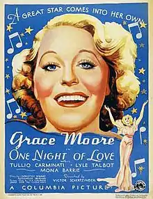 One Night of Love is a 1934 American Columbia Pictures romantic musical film set in the opera world, starring Grace Moore and Tullio Carminati. The film was directed by Victor Schertzinger and adapted from the story Don't Fall in Love, by Charles Beahan and Dorothy Speare.