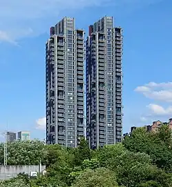 The One Park Taipei, also known as Da-An Tower (Chinese: 元利信義聯勤; pinyin: Yuánlì xìnyì lián qín), is a complex of residential twin skyscrapers in Daan District, Taipei, Taiwan. The South Tower has an architectural height of 139.5 m (458 ft) with 35 floors above ground, and the North Tower is 126 m (413 ft) with 31 floors above ground. The towers were designed by the British architectural firm Rogers Stirk Harbour + Partners, and were completed in 2018.[1][2] The complex is adjacent to the Daan Forest Park.[3]