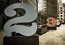 One Through Zero (The Ten Numbers) is a monumental series of sculptures by the American artist Robert Indiana. The work depicts the numerical digits 1, 2, 3, 4, 5, 6, 7, 8, and 9 and 0. The work was created between 1980 and 2001.[1] The numbers are made from polychrome aluminium with each measuring 72 x 72 x 36 in. (182.9 x 182.9 x 91.4 cm.).[1]