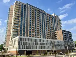 One University Circle is a mixed-used high rise in the University Circle district of Cleveland. It is located just down the block from the Cleveland Clinic as well as Case Western Reserve University on Euclid Avenue. Being constructed on the former location of the Children's Museum of Cleveland, the project is the first high-rise apartment building completed in the city in over 40 years. It houses 280 apartments, including penthouse apartments, a parking garage, concierge services, a fitness center, an outdoor swimming pool and a sky lounge offering bird's-eye views of the city.[1]
