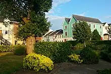 As a greenfield development,[5] Ongar's master plan provided for a new "main street" on which most commercial development would be concentrated, with the intention that it would emulate a traditional Irish village. As of 2004, this street had a number of services including a supermarket, newsagent's, grocery shops, off-licence, betting shop, hairdressers and a number of eating places.[5]