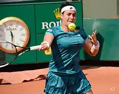 Ons Jabeur[lower-alpha 1] (born 28 August 1994) is a Tunisian professional tennis player. She has a career-high ranking by the Women's Tennis Association (WTA) of world No. 2, achieved on 27 June 2022. Jabeur is the current Tunisian number one, and the highest-ranked African and Arab tennis player in WTA and ATP rankings history. She has won five singles titles on the WTA Tour, as well as eleven singles titles and one doubles title on the ITF Circuit. Jabeur was the runner-up at Wimbledon in 2022 and 2023 and at the US Open in 2022, becoming the first African and Arab woman to contest a major singles final.Jabeur was first exposed to tennis by her mother at three years old. She became pro in her teen years when she reached two junior major girls' singles finals at the French Open in 2010 and 2011, winning the latter and becoming the first African or Arab to win a junior major since 1964. After nearly a decade of playing primarily at the ITF level, she started competing more regularly on the WTA Tour in 2017. She won the Arab Woman of the Year award in 2019. At the 2020 Australian Open, Jabeur became the first Arab woman to reach a major quarterfinal, a feat she repeated at the 2021 Wimbledon Championships. She also became the first Arab woman to win a WTA Tour title at the 2021 Birmingham Classic. Jabeur won the 2022 Madrid Open, a WTA 1000 event, her biggest title, becoming the first female Tunisian and Arab player to win at this level. Her achievements are credited with raising the profile of tennis across the African continent.[2]