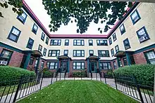 The Ontario Apartments are an historic apartment complex located at 25-31 and 37-41 Ontario Street in Providence, Rhode Island. The apartments were designed by Page & Page, and built in 1925 and 1927 by Harry Soren in a Mission/Spanish Revival style. The apartments consist of two three-story, flat-roofed, wood-framed buildings. The building at 25-31 Ontario Street was built in 1925, and forms a U-shape. 37-41 Ontario Street is to the west, is identical in detail but configured differently.[2]