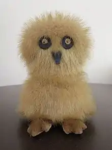 An Ookpik ([ukˈpik]) is a popular Inuit handicraft toy. It is a small, souvenir owl with large head and big eyes, a beak, and small black talons. They are often made from wolf fur, sealskin and other traditional materials.[1]