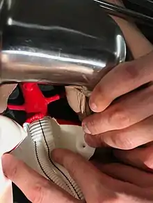 At medical centers with a high volume of open aortic surgery, the fastest option for open aortic surgery was sequential aortic clamping or "clamp-and-sew", whereby the aorta was clamped proximally and distally to the diseased segment, and a graft sewn into the intervening segment.[13] This technique leaves the branches of the aorta un-perfused during the time it takes to sew in the graft, potentially increasing the risk of ischemia to the organs which derive their arterial supply from the clamped segment. Critics of this technique advocate intra-operative aortic perfusion.[14] In infrarenal aneurysms, the relative tolerance of the lower extremities to ischemia allows surgeons to clamp distally with low risk of ill effect.