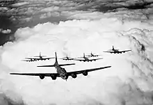Spitfires from No. 12 Group RAF were to escort the bombers home from the coast and as far as 5 mi (8.0 km) inland.[27] Further efforts to protect the bombers involved diversionary raids by the United States Army Air Forces (USAAF), with a formation of Consolidated B-24 Liberator heavy bombers sent to the German airbase at Abbeville, and a larger formation of Boeing B-17 Flying Fortresses sent to Lille, with Spitfire escorts.[23] Eight North American P-51 Mustang fighters of 268 Squadron were to undertake a "Rhubarb" (ground strafing attack) near Alkmaar in North Holland.[28] On the evening of Wednesday, 2 December, the crews were briefed on the raid; no-one was allowed to enter or leave the air bases, no mail was allowed out and the telephones were guarded.[29] The next morning, Thursday 3 December, the RAF Meteorological office declared weather conditions were unsuitable. The stations remained closed as the crews waited for the weather to improve. Finally on Sunday 6 December the weather over Eindhoven was declared favourable.[30]