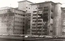 For Frits Philips, chairman of Philips, the destruction came as a shock. Dutch nationalists like Philips had to walk a tightrope. He had to give the appearance of collaborating with his German occupiers, while providing a minimal effort in support of the German war industry. Philips had been hamstringing the plant's production for some time, but the overstated reports he had been sending to Germany had apparently found their way to the Air Ministry.[68] Facing the reality of the destruction the following morning, Philips' first concern was that his skilled workers would be removed to Germany.[69] He immediately set about putting his people to work clearing the debris, providing his German overseers with optimistic projections of the plant's return to function. He made certain the repairs proceeded in a deliberate manner. In May the following year the Gestapo put Philips in a concentration camp for five months because he had failed to end to a strike. The RAF sent ten Mosquitos to revisit the Philips plants on 30 March 1943 to slow the recovery.[70] It took six months to restore production.[71]