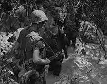 ![]() Marines of Company A, 1st Battalion 9th Marines move through a stream during Operation Prairie III | |||||||