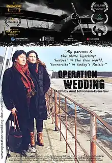 Operation Wedding is a documentary film about the Dymshits–Kuznetsov hijacking affair, an escape attempt from the Soviet Union by a group of young Soviet, mostly Jewish, who were denied exit visas. The documentary is told from a personal point of view of the filmmaker, Anat Zalmanson-Kuznetsov, daughter of group members: Eduard Kuznetsov and Sylva Zalmanson.[1]
