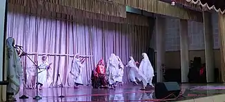 Oppana (Malayalam: ഒപ്പന) is a popular form of social entertainment among the Mappila (Kerala Muslims) community of Kerala, South India, prevalent throughout Kerala, especially in Malabar.[1] The term Oppana is believed to be originated from the Arabic word "Affna".[2] Oppana is traditionally used in various important cultural ceremonies, and in particular, is a component of all Mappila weddings. In Kerala, this art form has been revived with much popularity on the performing stages of the Youth Festivals of the student community.