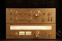 The second series was offered in 1979 and the line was expanded and redesigned with products that covered the entire spectrum of the high-end market. The receiver line consisted of model numbers SA-5901/5905, SA-5601/5605, SA-5401/5405, SA-5201/5205 and SA-5101/5105. The receivers were offered in both silver and black. The top of the line consisted of model numbers SA-5901 and SA-5905, and this series offered 125 watts minimum RMS per channel into 8 Ohms from 20 Hz-20 kHz with no more than 0.02% T.H.D.[4] One of the unique features of the top-of-the-line product SA-5901/5905 and SA-5601/5605 was the ability to turn off the radio section while still using the receiver as an amplifier.