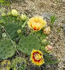 Opuntia cespitosa, commonly called the eastern prickly pear,[1] is a species of cactus native to North America. It is most common west of the Appalachian Mountains and east of the Mississippi River, where it is found in the Midwest, Upper South and in Ontario.[1] Its natural habitat is in dry, open areas, such as outcrops, glades, and barrens.[1]