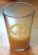 In the United States, orange juice is regulated and standardized by the Food and Drug Administration (FDA or USFDA) of the United States Department of Health and Human Services. According to the FDA, orange juice from concentrate is a mixture of water with frozen concentrated orange juice or concentrated orange juice for manufacturing.[31] Additional ingredients into the mixture may include fresh/frozen/pasteurized orange juice from mature oranges, orange oil, and orange pulp.[15] Furthermore, one or more of the following optional sweetening ingredients may be added: sugar, sugar syrup, invert sugar, invert sugar syrup, dextrose, corn syrup, dried corn syrup, glucose syrup, and dried glucose syrup.[31] The orange juice must contain a minimum Brix level of 11.8, which indicates the percentage of orange juice soluble solids, excluding any added sweetening ingredients.[32]
