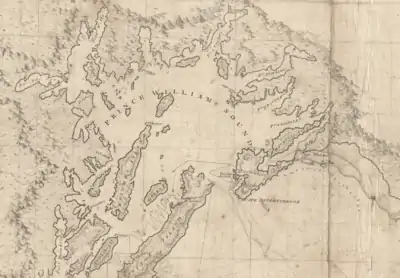 A chart of Prince William Sound from 1798 showing Orca Bay with its original name Puerto Córdova.