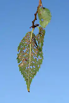 Orchestes alni Shothole symptoms produced by adult feeding on Siberian elm