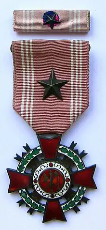 | Awarded for | Outstanding military services by participating in an action in time of war or in quasi-state of war or by performing his/her duty equivalent to combat, such as responding to the attack of an enemy in a contact area. |