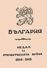 31 January 1985/ | Awarded to serving Bulgarian military personnel along with living veterans of the war against Germany. | ||