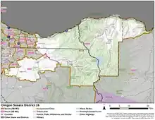 The current district is similar to its previous iterations. The district no longer includes any part of Portland, Clackamas, or Happy Valley and uses the Clackamas River as its northern boundary in Clackamas County. It has added the communities of Beavercreek, Canby, and Estacada in Clackamas County and Chenoweth, Mosier, and The Dalles in Wasco County.