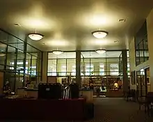 In 1914, the YWCA of Salem was organized by the same Salem Women's Club.[1] Located in downtown on Cottage Street Northeast, the YWCA moved in 1954 to the lot adjoining the library.[7][8][9] By the 1960s, the small library had a collection in excess of 100,000 volumes, but needed a larger facility.[10] A public campaign to build a new library began in 1968, with the library to be part of a larger government center that included a city hall and fire station.[10] In 1971, the YWCA purchased the adjacent Carnegie library building for $150,000, and on July 6, 1972, the Salem Public Library vacated the Carnegie building and moved to Salem's new Civic Center located west of the old library.[2] Located next to the YWCA's existing home, the old library was turned into the organization's youth center.[9] The building was remodeled from 1990 to 1991.[2]