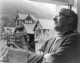 The Festival has continued ever since (excepting 1941–1946 while Bowmer served in World War II and most of 2020 and 2021 due to the COVID-19 pandemic[6]). It quickly developed a reputation for quality productions. Angus Bowmer's first wife Lois served as art director, creating both costumes and scenery during the formative years of the Festival from 1935 to 1940.[1] In 1939, OSF took a production of The Taming of the Shrew to the Golden Gate International Exposition in San Francisco that was nationally broadcast on radio. The lead actress, learning at the last minute the broadcast would be to a national audience, suffered a panic attack, was rushed to the hospital, and the stand-in took over. The scripts didn't arrive on the set until three minutes before air time. The Festival achieved widespread national recognition when, from 1951 to 1973, under the direction of Andrew C. Love (1894–1987), NBC broadcast abbreviated performances each year that were carried by more than 100 stations nationally and, after 1954, on Armed Forces Radio and Radio Free Europe. The programs won favorable reviews from critics that drew audiences to the Festival from around the country. The programs led Life magazine to do a story on the Festival in 1957, bringing even more people to the plays. The NBC programs and the subsequent attention go a long way to explaining how a tiny out-of-the-way timber town in the Northwest became a theatrical and tourist Mecca.[7]