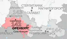 The Orenburg constituency (No.142[lower-alpha 1]) is a Russian legislative constituency in Orenburg Oblast. Until 2007 the constituency covered the entirety of Orenburg and central Orenburg Oblast, however, since 2016 Orenburg constituency covers only half of Orenburg and southwestern Orenburg Oblast.