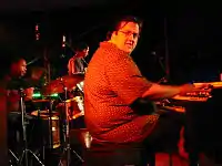 An organ trio is a form of jazz ensemble consisting of three musicians; a Hammond organ player, a drummer, and either a jazz guitarist or a saxophone player. In some cases the saxophonist will join a trio which consists of an organist, guitarist, and drummer, making it a quartet.[1] Organ trios were a popular type of jazz ensemble for club and bar settings in the 1950s and 1960s, performing a blues-based style of jazz that incorporated elements of R&B.[2] The organ trio format was characterized by long improvised solos and an exploration of different musical "moods".[2]