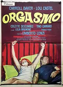 Orgasmo (Italian for "orgasm") is a 1969 giallo film co-written and directed by Umberto Lenzi and starring Carroll Baker, Lou Castel, and Colette Descombes. It follows a wealthy American socialite who finds herself preyed upon by two nefarious young siblings who indulge her in sex, drugs, and alcohol while she vacations at an Italian villa. This film helped launch the second phase of Baker's career, during which she became a regular star in Italian productions.[4]