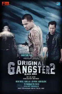 Original Gangster 2: Black Area (Burmese: အော်ရီဂျင်နယ်ဂန်းစတား၂ အမဲရောင်နယ်မြေ) is a 2017 Burmese action film, directed by Joe starring Myint Myat, Yone Lay, Zin Wine, Khin Hlaing, Htoo Char and Yu Thandar Tin. It is the second movie of Original Gangster film series. Original Gangster 1 was only released as Direct-to-video in 2016. But Original Gangster 2 was released as Big screen film and produced by Royal Hero Film Production premiered in Myanmar on July 7, 2017.[1][2][3][4][5][6][7][8][9]