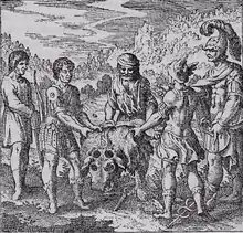 - ↑ The ancient sources for this story all phrase it so that this could be either a bull or a cow; translations vary, although "bull" may be more common. A bull would be an appropriate sacrifice to male gods.