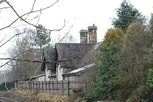 A signal box was bought into use in 1907. It was 16 feet (4.9 m) by 8 feet (2.4 m), with a 16 lever frame. The box closed on 8 March 1960. Official records imply that from 1886, a frame of 10 levers was worked from the station.