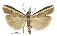 - 1 2 Gaskin, D. E. (1975). "Revision of the New Zealand Crambini (Lepidoptera: Pyralidae: Crambinae)". New Zealand Journal of Zoology. 2 (3): 265–363. doi:10.1080/03014223.1975.9517878.