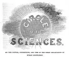 Orr's Circle of the Sciences was announced first as a part publication, a series in weekly parts, price 2d. beginning 5 January 1854.[14] The series editor was John Stevenson Bushnan, who also wrote the introductory section of the first volume.[15]