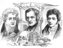 Engraving of Georges Cuvier, Richard Owen, Lorenz Oken. Originally at p. 161 of the first volume (1854) of Orr's Circle of the Sciences, it was reproduced as on this plate in Owen's The Principal Forms of the Skeleton and the Teeth (1856), which was the standalone publication of two of Owen's articles.
