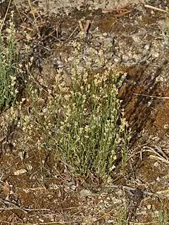 It is found on uncultivated land, slopes or woody rainfed crops, on sandy, acid, that is, siliceous soils; at an altitude of 300-1500 metres in the central west of the Iberian Peninsula, lacking in coastal areas, and reaches the interior of Galicia and in the south to points of the Sierra Morena; reported as adventitious in Algeria (Mascara) and Italy (Piedmont), it seems to have disappeared from these countries, as it has not been collected for a century and a half; there is a modern collection from the Landes de Gascogne, where it may be a recent introduction.[8]