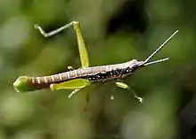 The Orthacridinae are a sub-family of grasshoppers (Orthoptera : Caelifera) in the family Pyrgomorphidae. Species are found in: Central America, Africa, Asia, Australia and certain Pacific Islands. The type genus is Orthacris and the taxon proposed by Bolívar in 1905.[1]