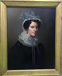 Despite Orville Hungerford only having a limited education, he contributed towards the betterment of the young women in the Jefferson County, New York area by working with Dr. John Safford to promote the Watertown Female Academy in 1823. Dr. Safford and Orville's own daughters were the beneficiaries of this effort as both Susan M. Safford and Martha P. Hungerford were early students of the school taught by Gen. "Fighting Joe" Hooker's sister Sarah R. Hooker.[105] This institution became "the elite school of the village."[106] Such education was not cheap, costing a father $1.50 to $2.00 per week to board his daughter and have her laundry done, which did not include the cost of furnishing "a bed, bedding, napkins, a silver spoon and a tumbler."[106] Even though the Watertown Female Academy "had a high reputation, and did much toward encouraging similar enterprises throughout the country", it ended up closing in 1837.[107]