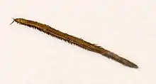 These centipedes are very elongated with a high mean number of trunk segments (often greater than 100) and great variability in this number within species.[2] The number of leg-bearing segments in this family varies within as well as among species and ranges from 53 to 169.[3] The minimum number of legs recorded in this family (53 pairs) appears in the species Orphnaeus brevilabiatus;[4] the maximum number (169 pairs) appears in the species Titanophilus maximus.[5][3]