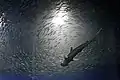 Osaka Aquarium are focusing on research on sharks and Rays.[12] By 2016, Kaiyukan had successfully captivity or breeding 47 species of sharks, 37 species of rays, and 1 species of ghost shark, for a total of 85 species.[12] In addition, the past eight surveys of tagging whale sharks have revealed that they can migrate to the Philippines and dive to a depth of 1,500 m (4,900 ft).[13][14]